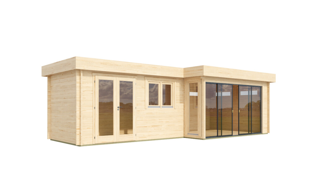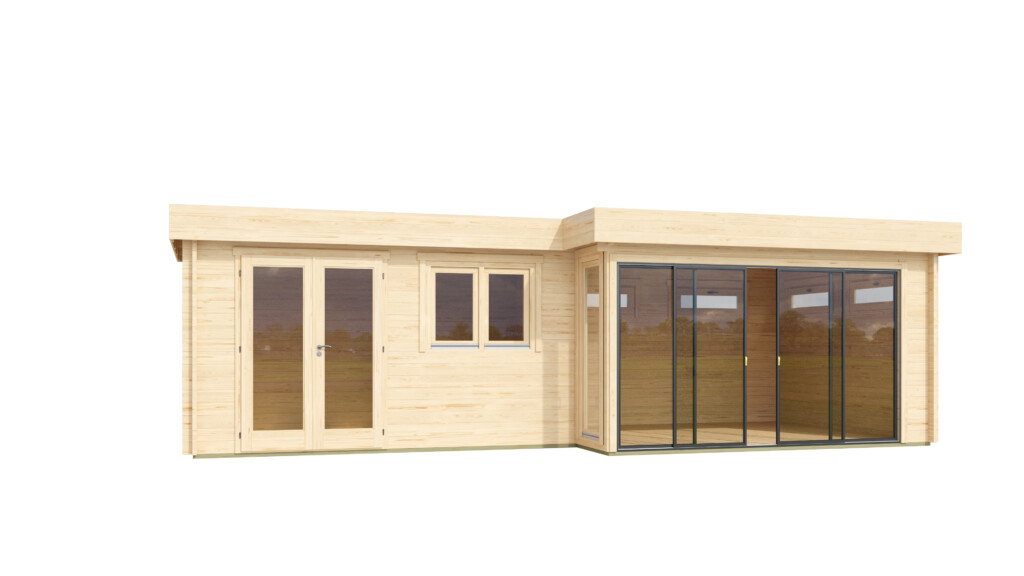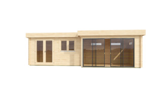 A spacious, modern garden room designed to feel open yet well-balanced. Built from high-quality timber and finished with large double glazed, toughened glass elements, it creates a bright, refined space with both open and more private areas—perfect for working, relaxing, or hosting in your own way.