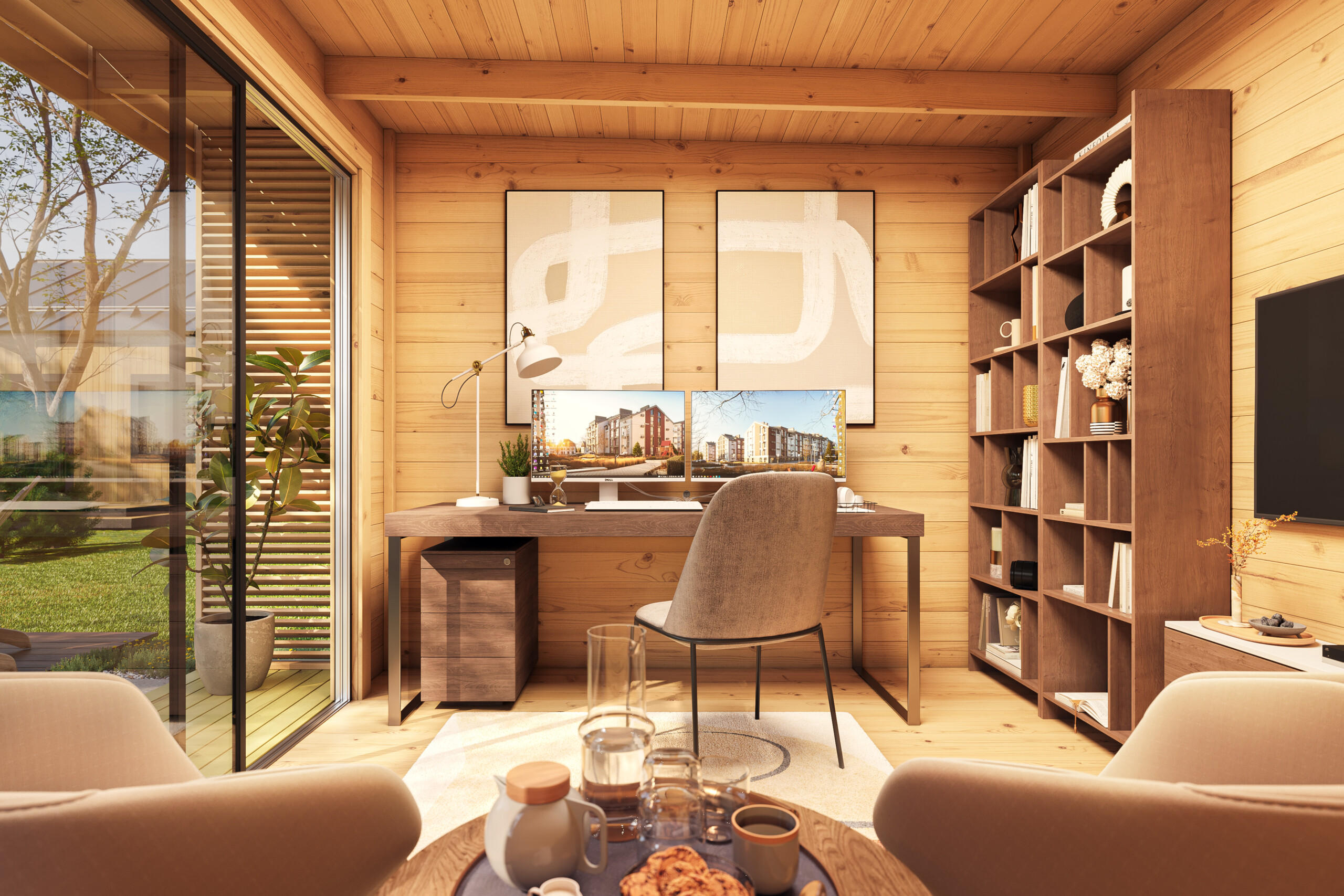 Monaco 44 garden shed is the ideal solution - it has all the office’s professionalism, but without the daily commute. A small, separate house that increases your productivity. A cozy, small hut with an inviting character. As a specialised company that designs and manufactures contemporary home office bungalows, we only use materials from sustainable sources.